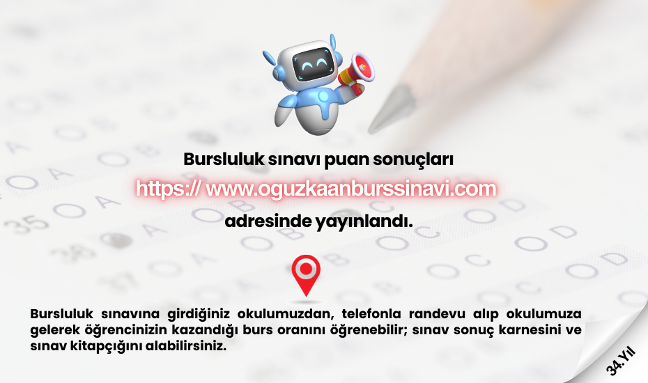 8-9 Şubat 2020 Oğuzkaan Bursluluk Sınavı