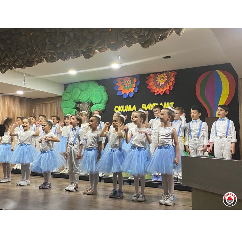 1. Sınıf öğrencilerimiz okuma ve yazmayı öğrenmenin keyfini yapılan okuma bayramı ile sergilediler.